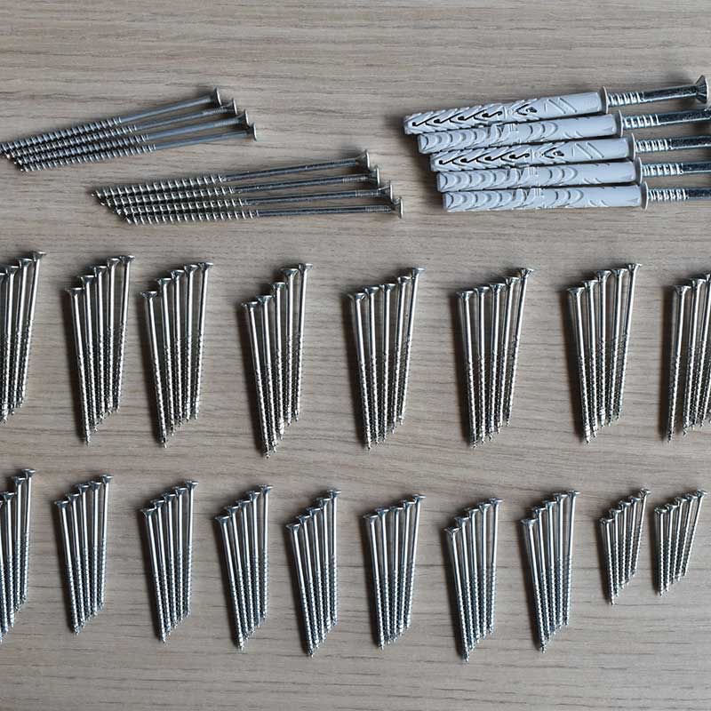 - 40 stuks: 4 x 70mm schroeven voor treden (Bevestigen treden aan de spil, van onderen.)